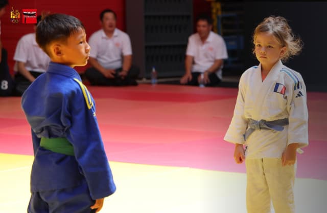 A defining moment came when Bhutan’s Norbu Penden Norzang faced Léa, accompanied by her father, who himself participated in the Veteran World Championships several times, in a gripping bout. After Norbu’s hard-fought victory, Léa ran into the arms of her father and coach, Alexis Plantard (https://www.ijf.org/news/show/just-dream-it-and-go-for-it). What followed was a heartfelt handshake and embrace between the two young competitors, an image that captured the soul of the event.